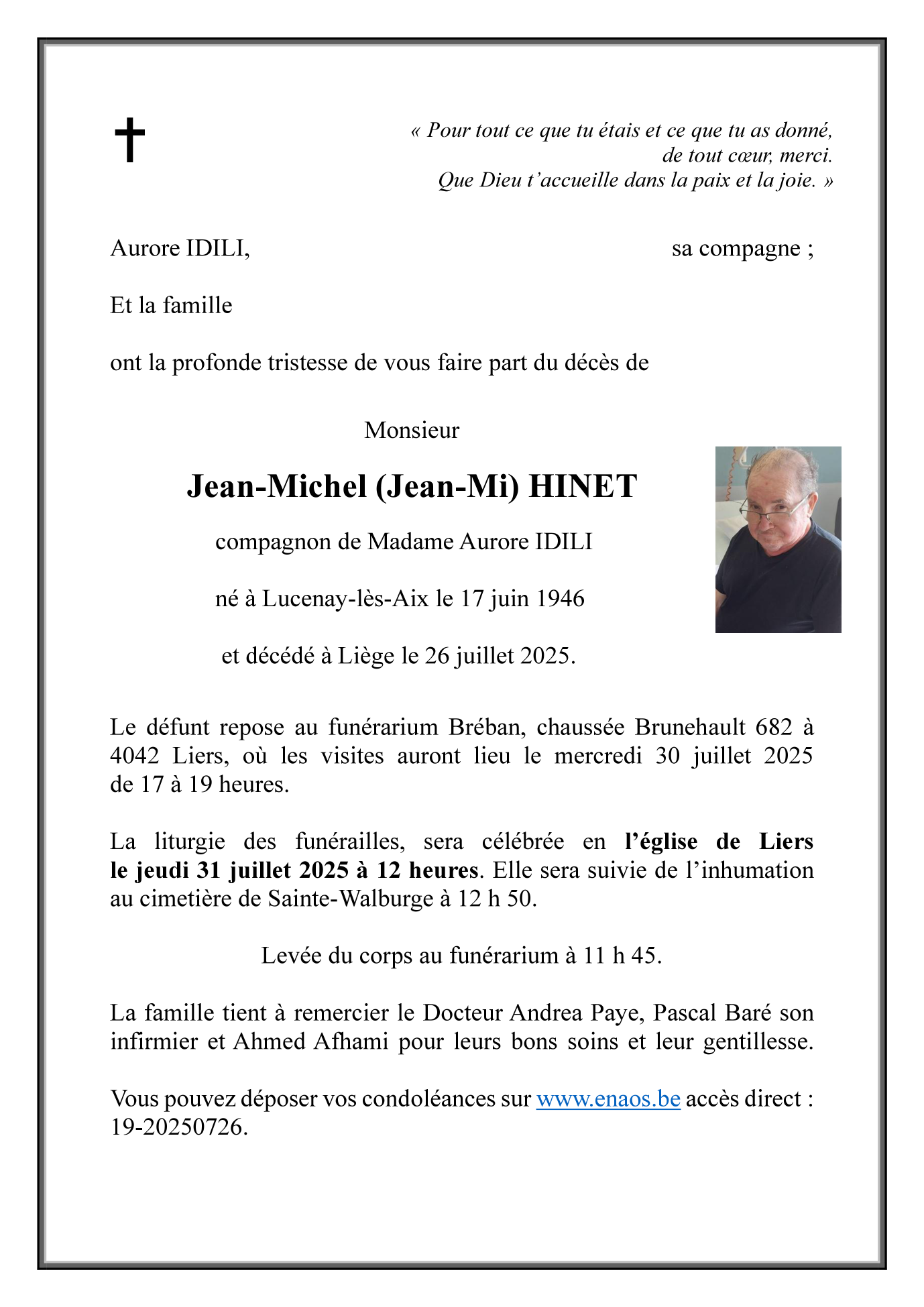 Monsieur Jean-Michel (Jean-Mi) HINET compagnon d'Aurore IDILI