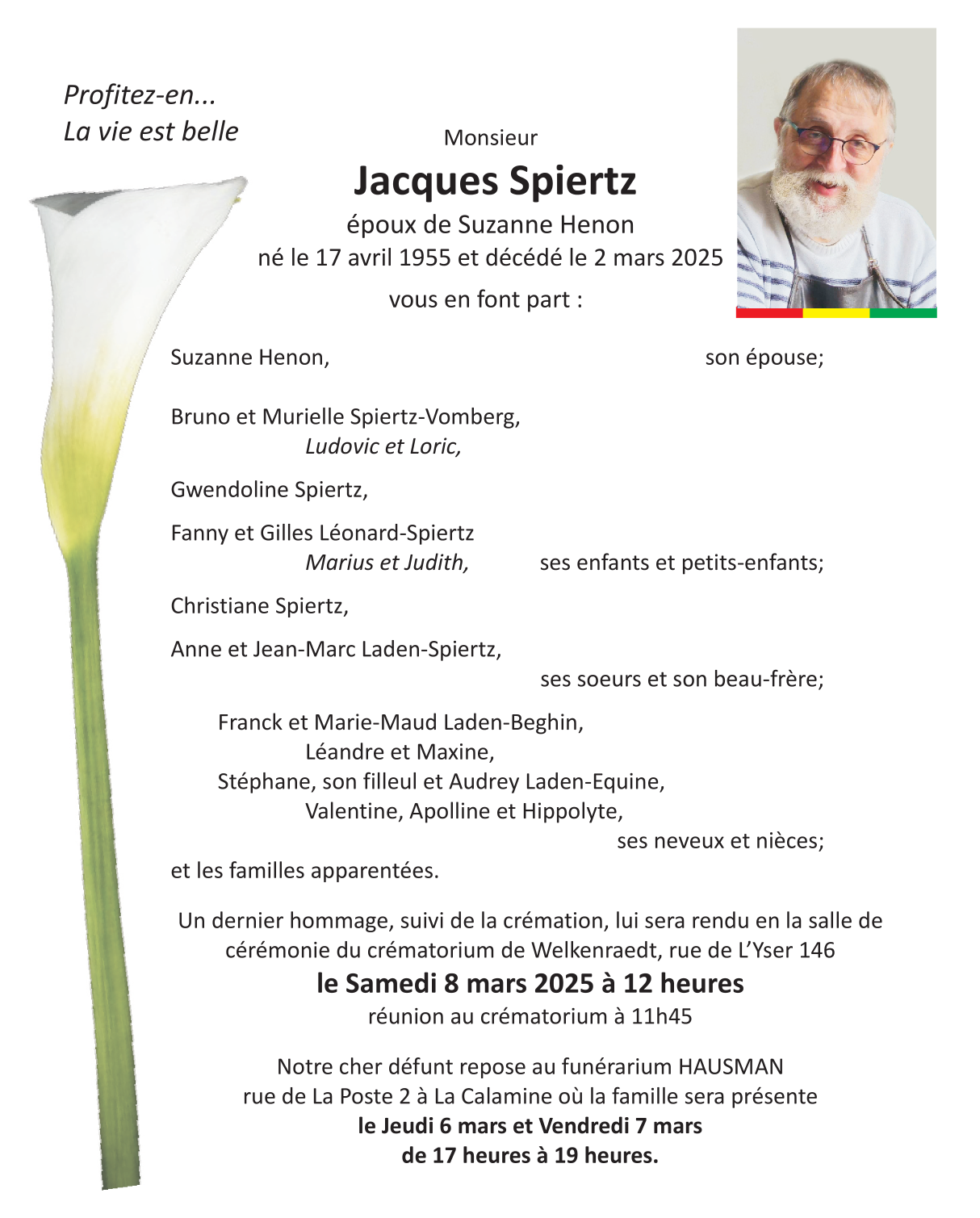 Décédé à Eupen (4700) le dimanche 2 mars 2025 à l'âge de 69 ans