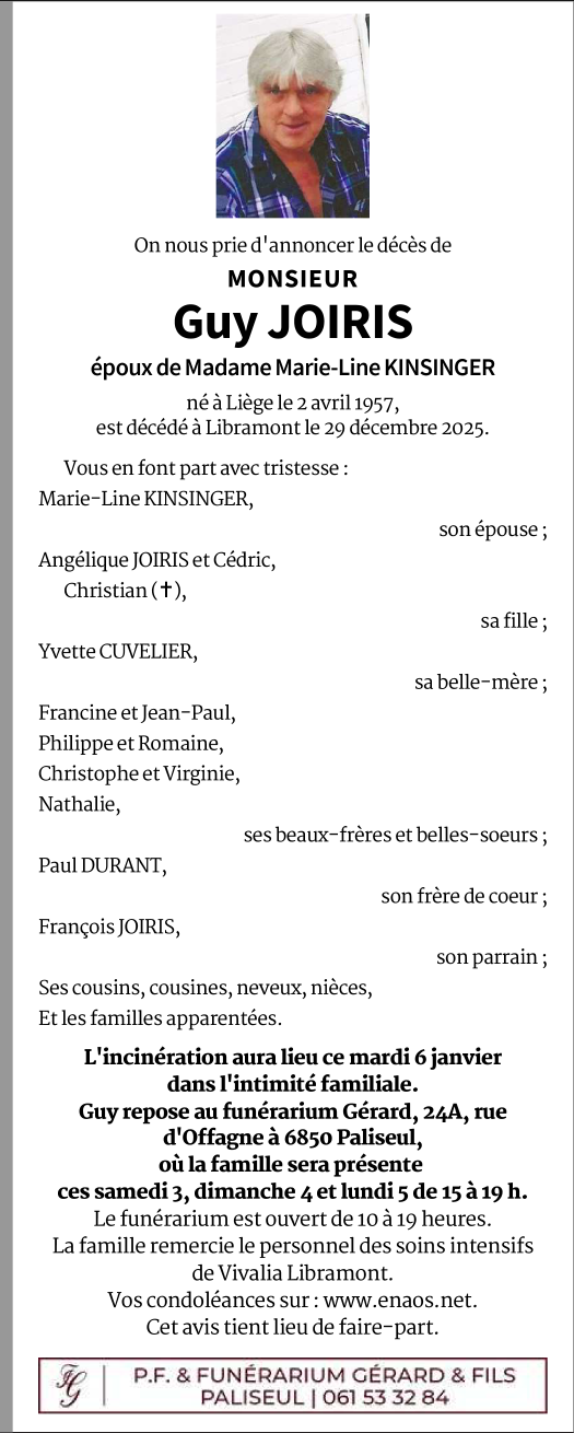 Overleden te Libramont (6800) op zaterdag 3 januari 2026 op 68-jarige leeftijd