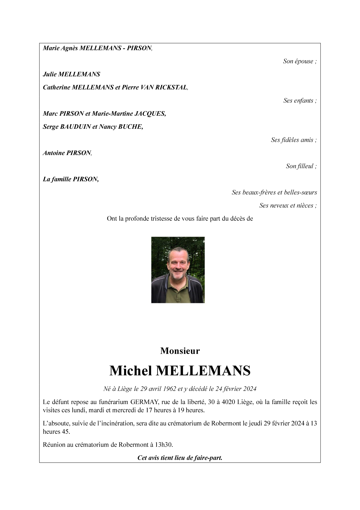 Décédé à Jupille-sur-Meuse (4020) le samedi 24 février 2024 à l'âge de 61 ans