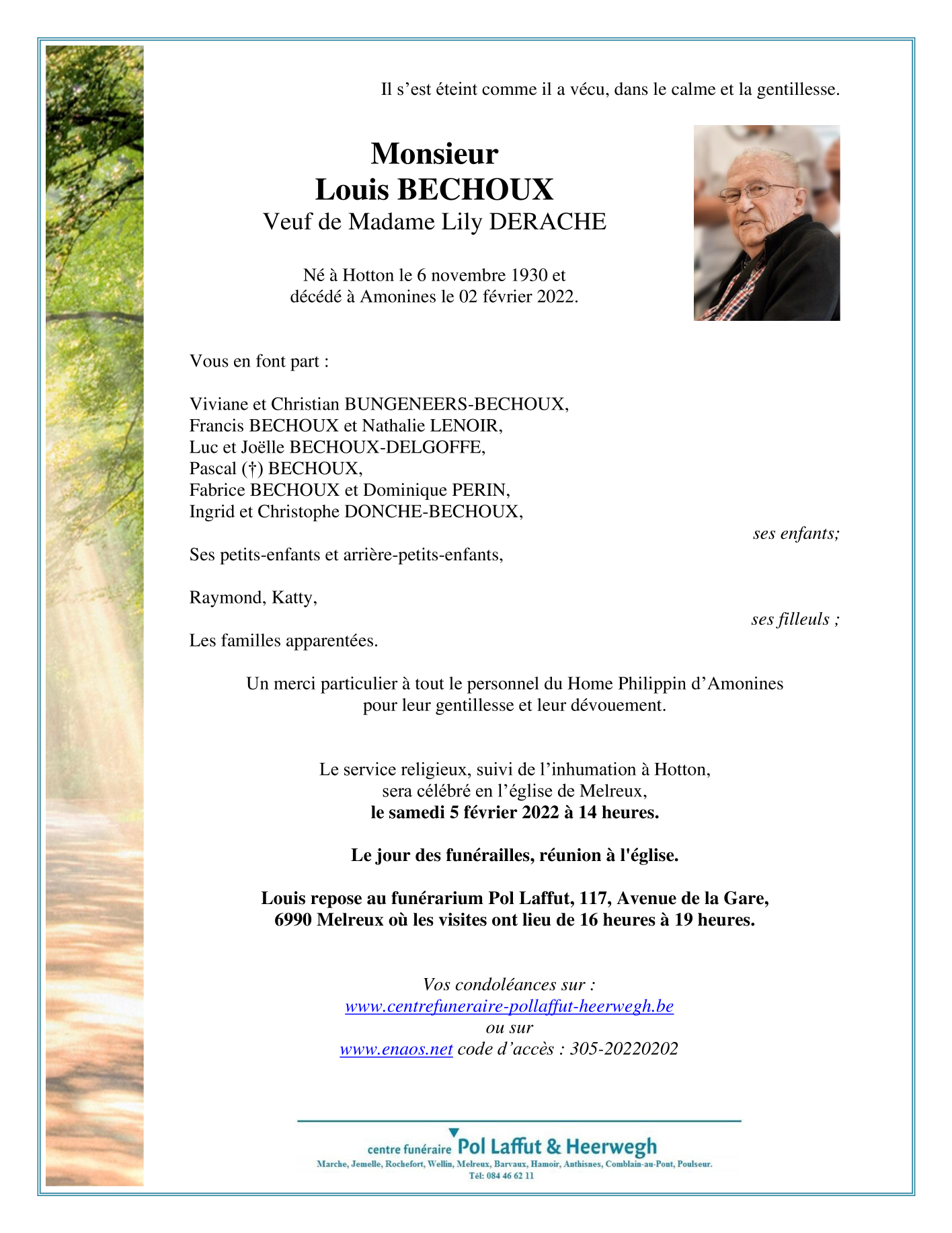 Died in Amonines (6997) on 02 February 2022 at the age of 91 years