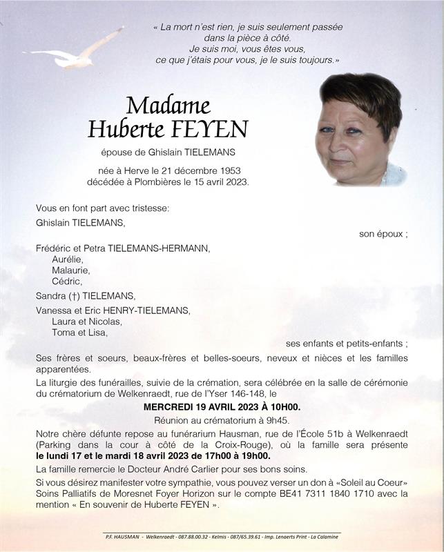 Overleden te Plombières (4850) op zaterdag 15 april 2023 op 69-jarige leeftijd