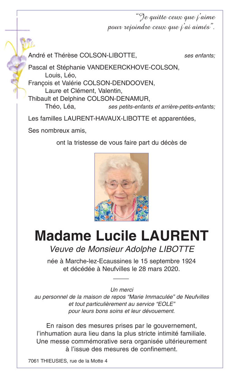 Madame Lucile LIBOTTE née LAURENT