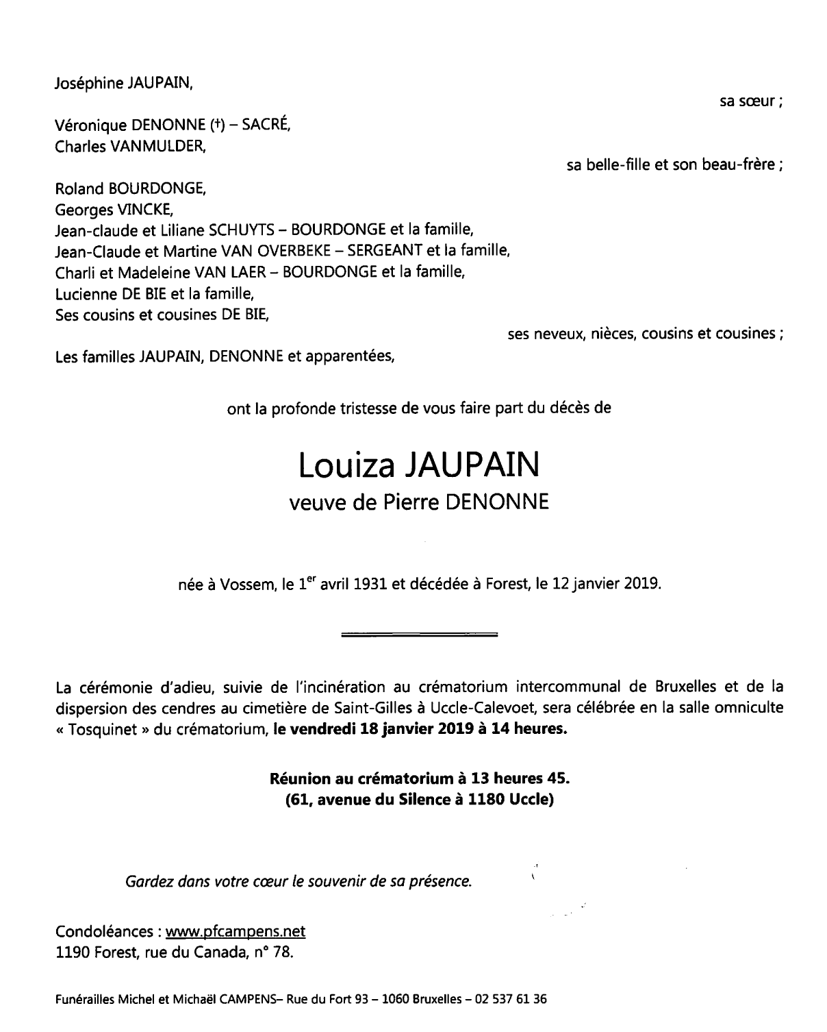 Overleden te Forest (1190) op zaterdag 12 januari 2019 op 87-jarige leeftijd