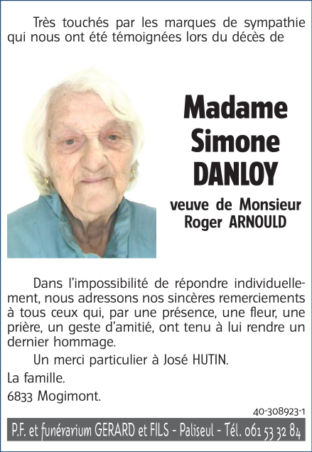 Fallecida en Mogimont (6833) el jueves, 27 de diciembre de 2018 a la edad de 89 años