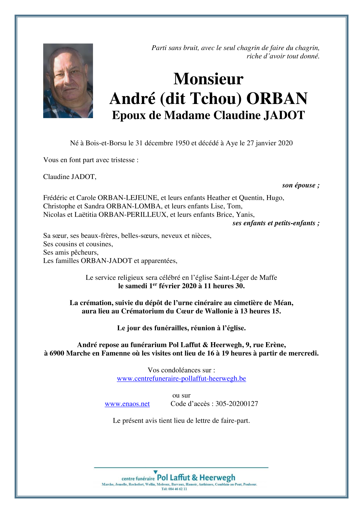 Overleden te Aye (6900) op maandag 27 januari 2020 op 69-jarige leeftijd