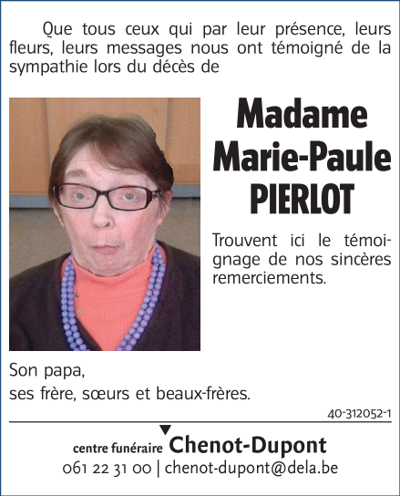 Décédée à Wideumont (6800) le mercredi 13 février 2019 à l'âge de 64 ans