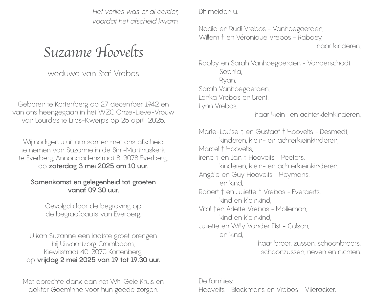 Died in Erps-Kwerps (3071) on 25 April 2025 at the age of 82 years