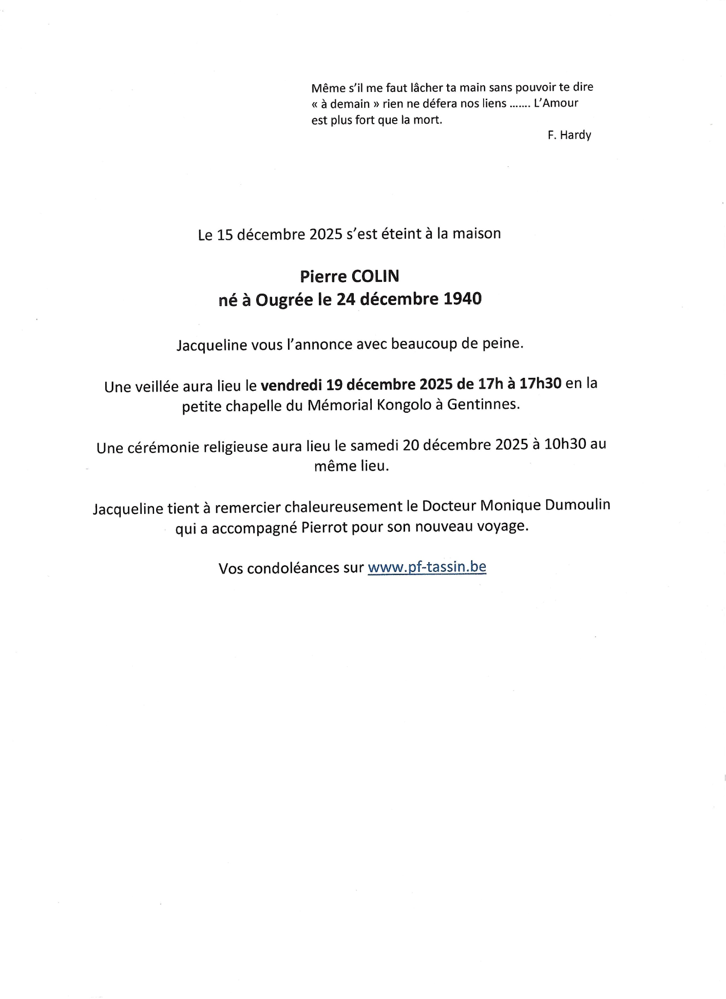 Décédé à Gentinnes (1450) le lundi 15 décembre 2025 à l'âge de 84 ans
