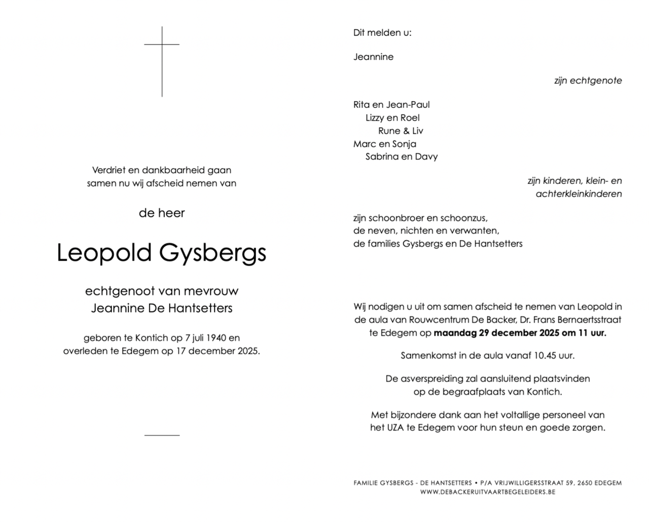 Décédé à Edegem (2650) le mercredi 17 décembre 2025 à l'âge de 85 ans