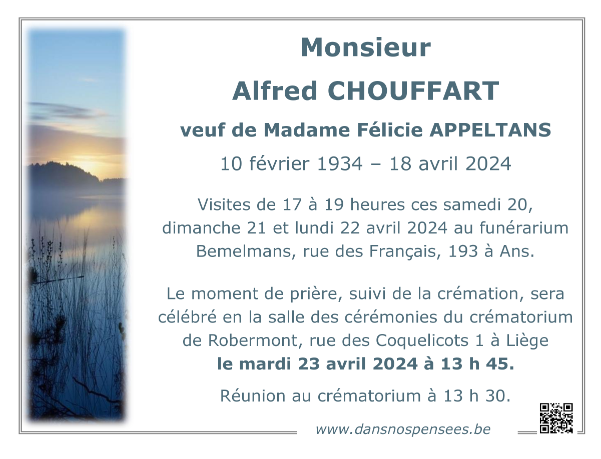 Décédé à Liège (4000) le jeudi 18 avril 2024 à l'âge de 90 ans