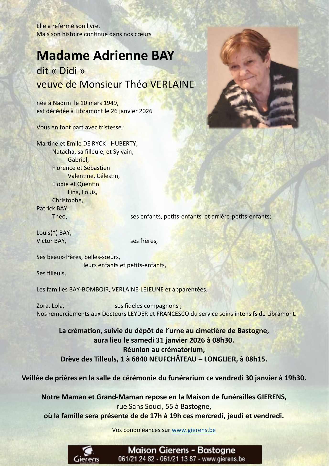 Died in Libramont-Chevigny (6800) on 26 January 2026 at the age of 76 years