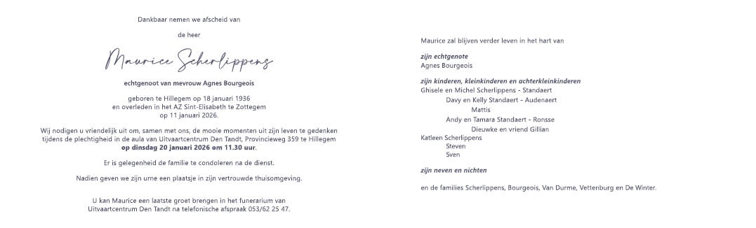 Décédé à Zottegem (9620) le dimanche 11 janvier 2026 à l'âge de 89 ans