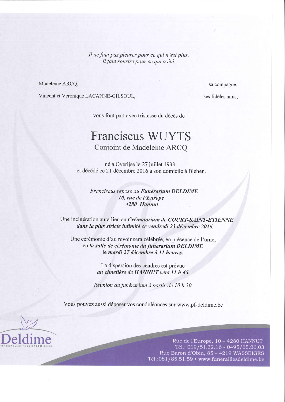 Décédé à Blehen (4280) le mercredi 21 décembre 2016 à l'âge de 83 ans