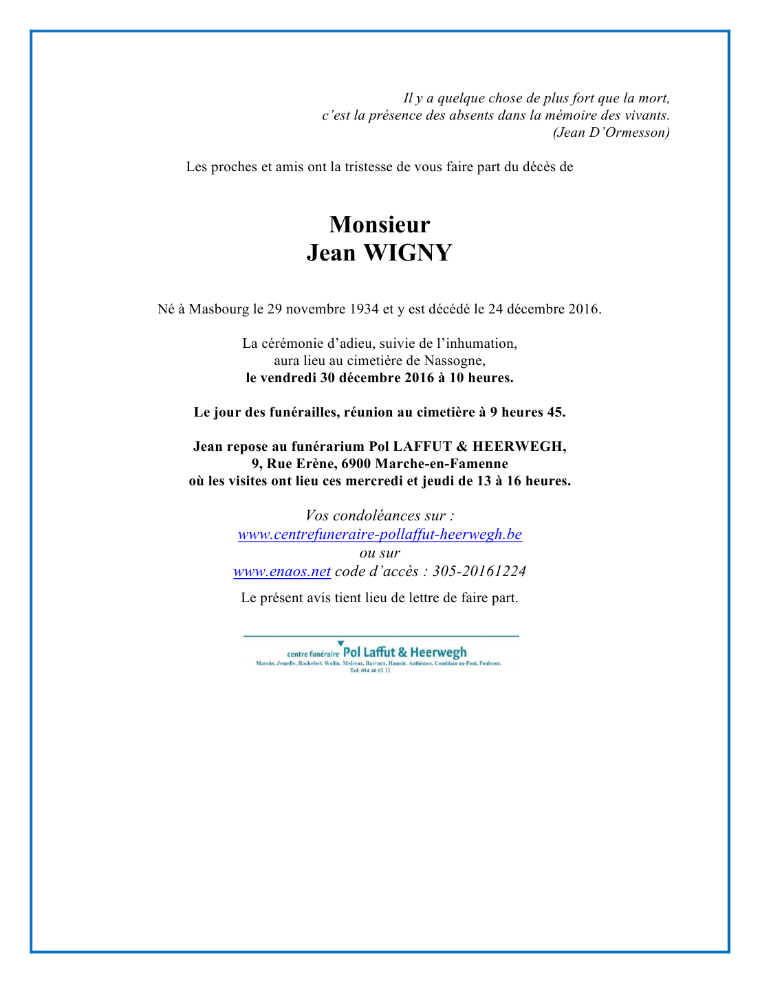 Monsieur Jean WIGNY