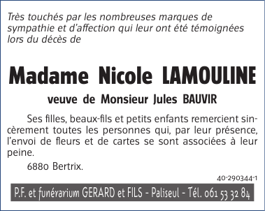 Veuve de Monsieur Jules BAUVIR
