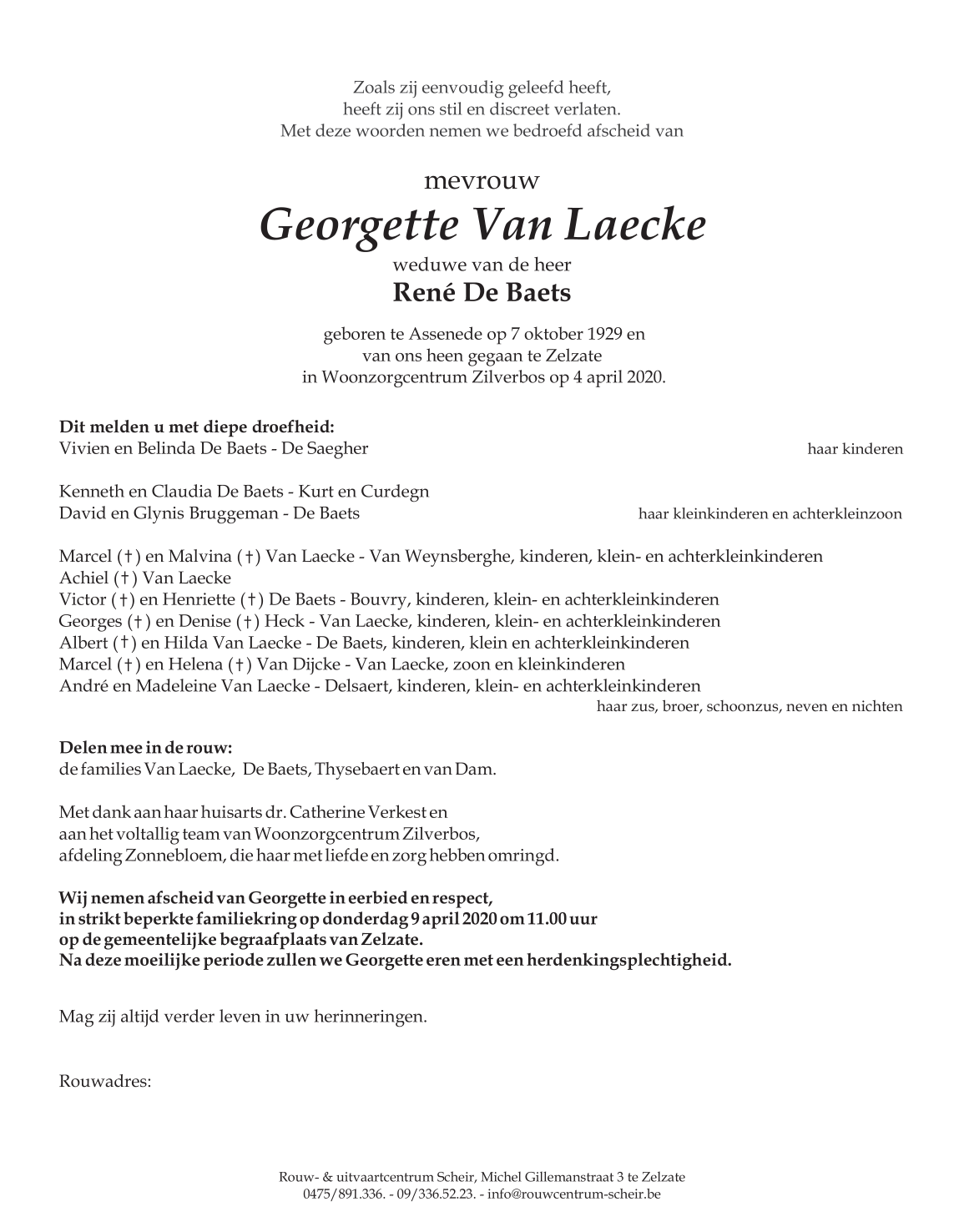 Overleden te Zelzate (9060) op zaterdag 4 april 2020 op 90-jarige leeftijd