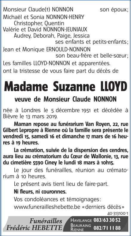 Overleden te Bievre (5555) op woensdag 13 maart 2019 op 67-jarige leeftijd