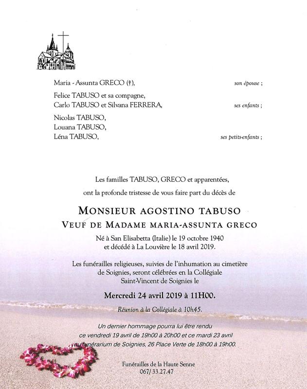 Décédé à La Louvière (7100) le jeudi 18 avril 2019 à l'âge de 78 ans