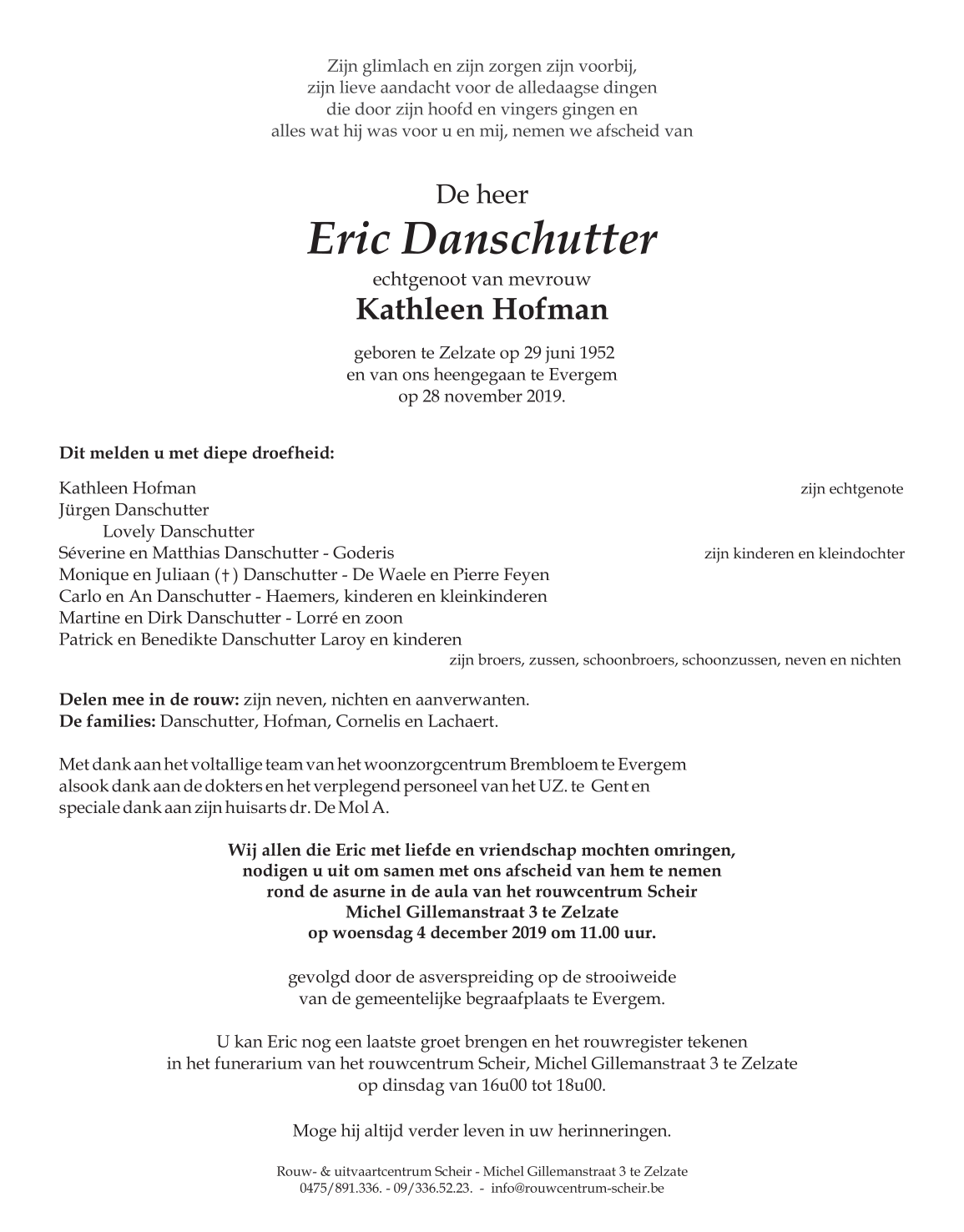 Overleden te Evergem (9940) op donderdag 28 november 2019 op 67-jarige leeftijd