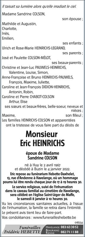 Décédé à Buzin (5370) le mardi 4 janvier 2022 à l'âge de 54 ans