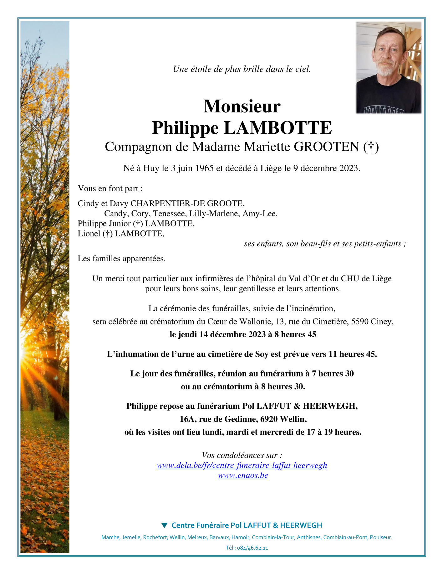 Died in Liège (4000) on 09 December 2023 at the age of 58 years