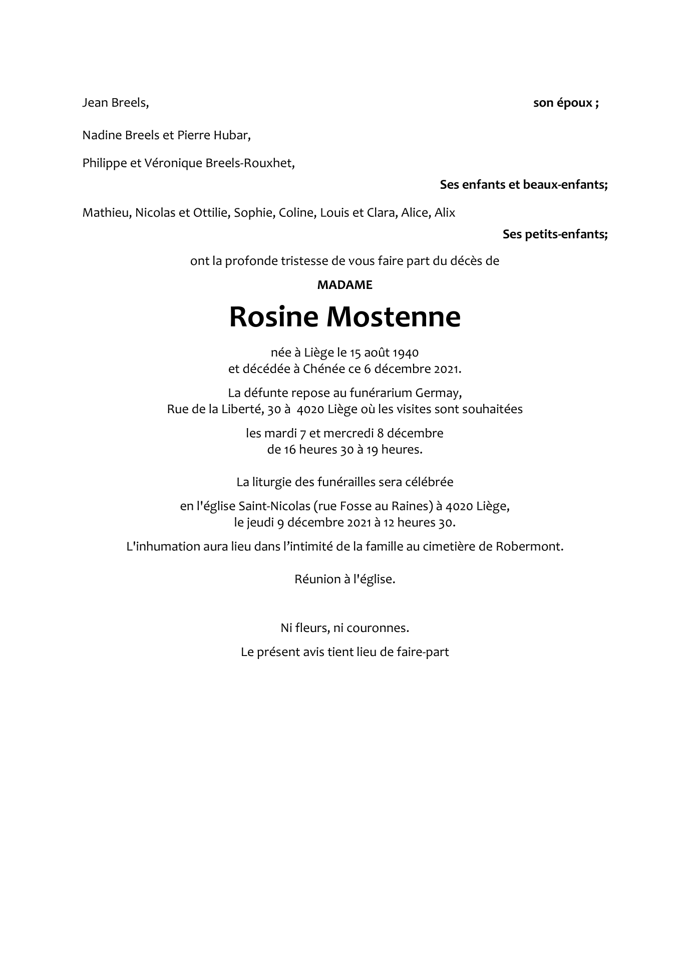 Décédée à Chênée (4032) le lundi 6 décembre 2021 à l'âge de 81 ans