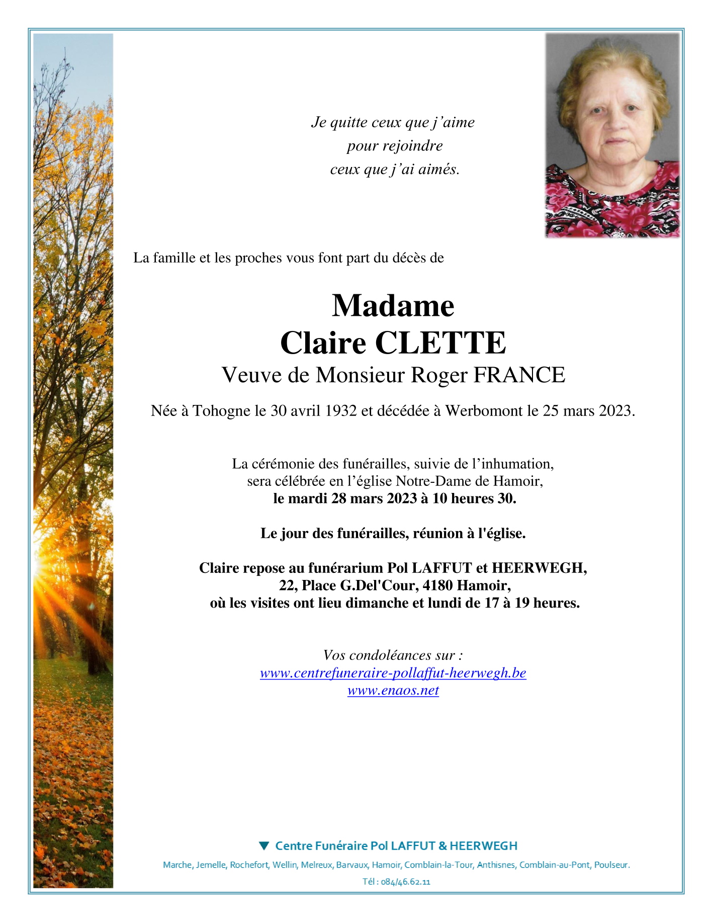 Overleden te Werbomont (4190) op zaterdag 25 maart 2023 op 90-jarige leeftijd
