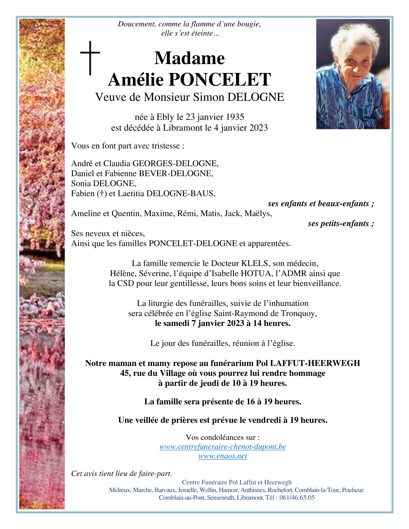 Décédée à Libramont (6800) le mercredi 4 janvier 2023 à l'âge de 87 ans