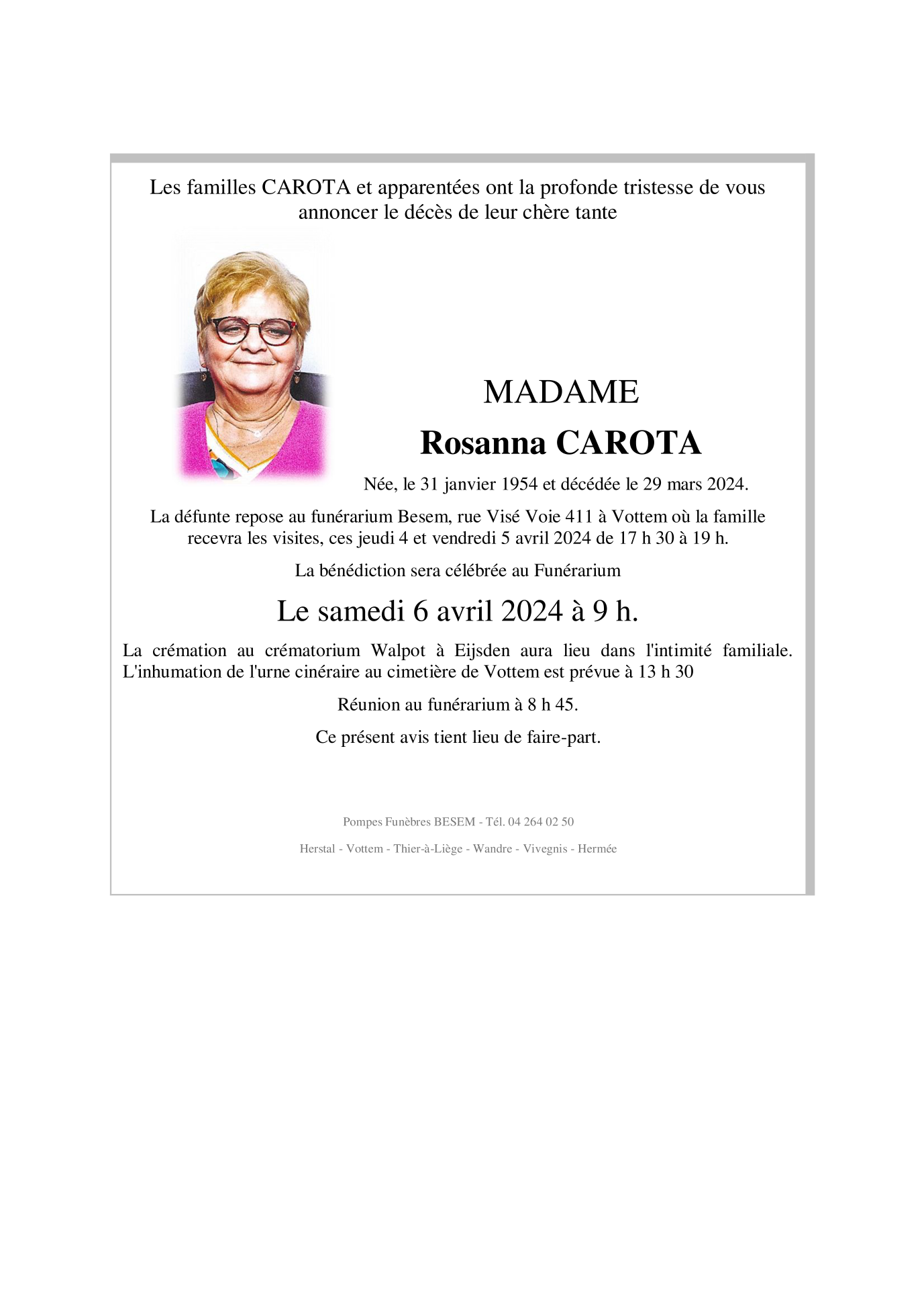 Madame Rosanna CAROTA