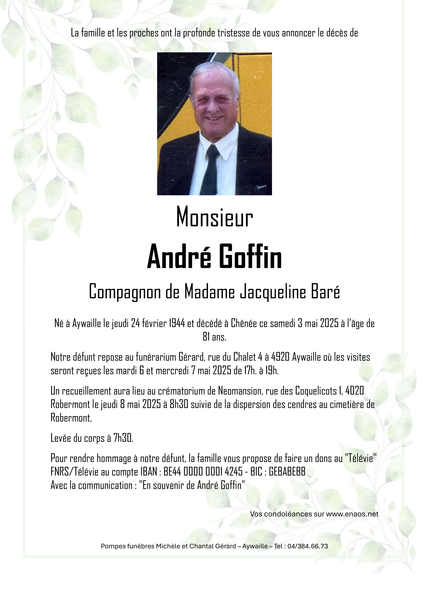 Né à Aywaille (4920) le jeudi 24 février 1944