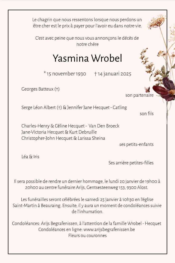 Décédée à Aalst (9300) le mardi 14 janvier 2025 à l'âge de 94 ans