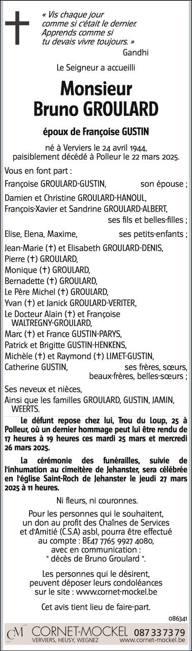 Fallecido en Polleur (4910) el sábado, 22 de marzo de 2025 a la edad de 80 años