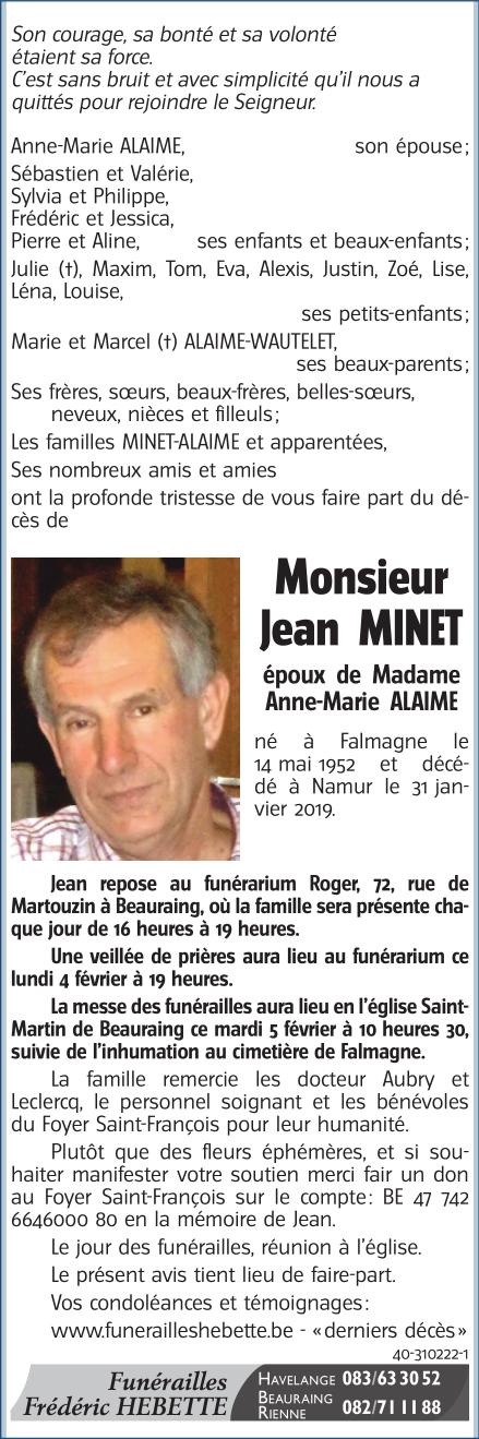Fallecido en Namur (5000) el jueves, 31 de enero de 2019 a la edad de 66 años
