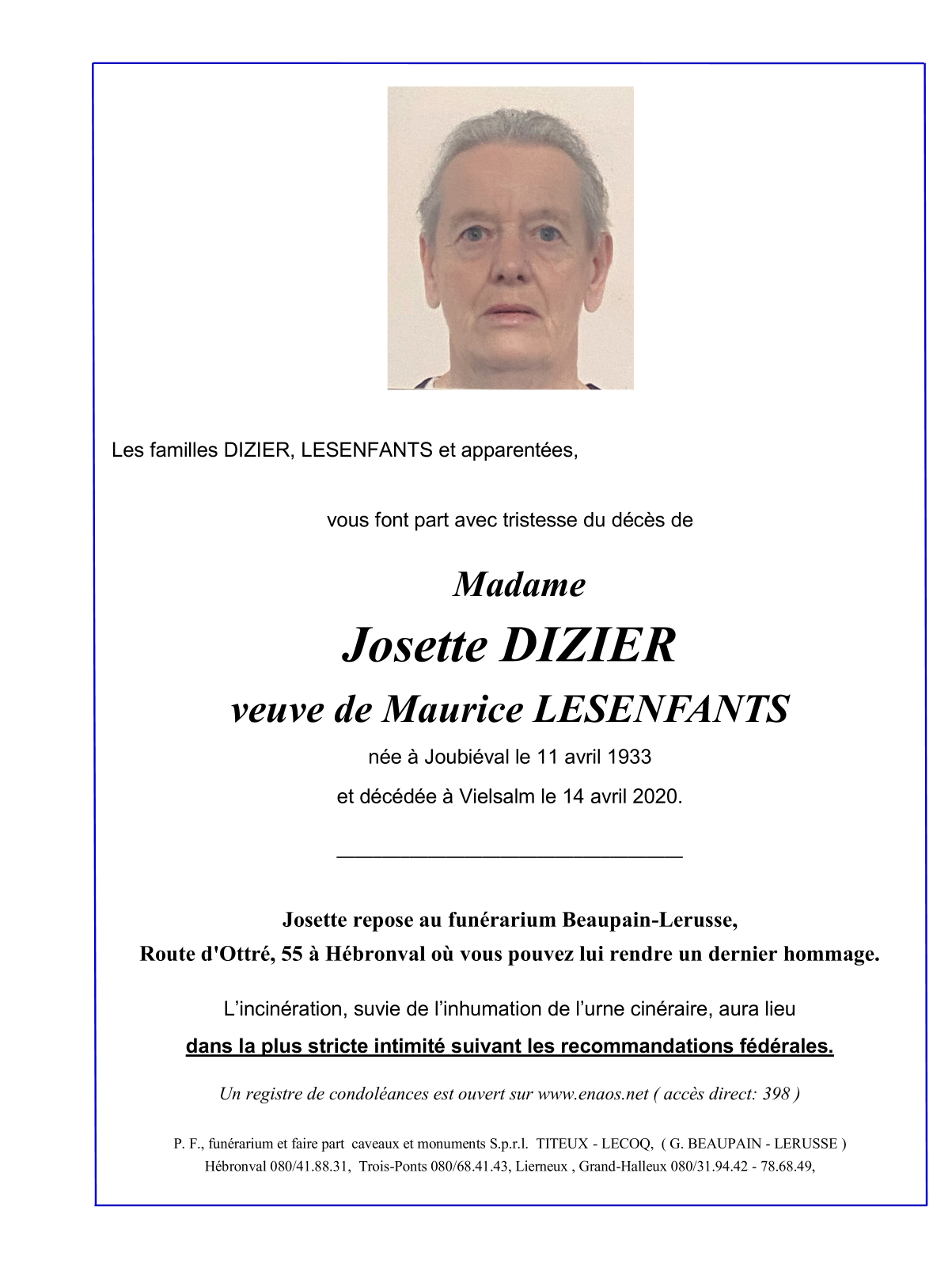 Died in Vielsalm (6690) on 14 April 2020 at the age of 87 years