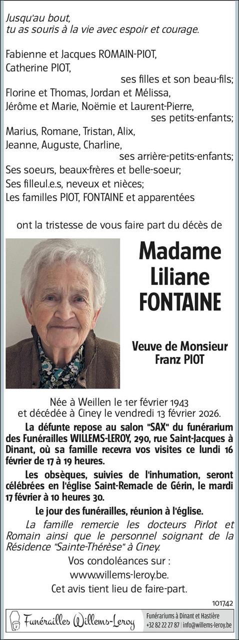 Overleden te Ciney (5590) op vrijdag 13 februari 2026 op 83-jarige leeftijd