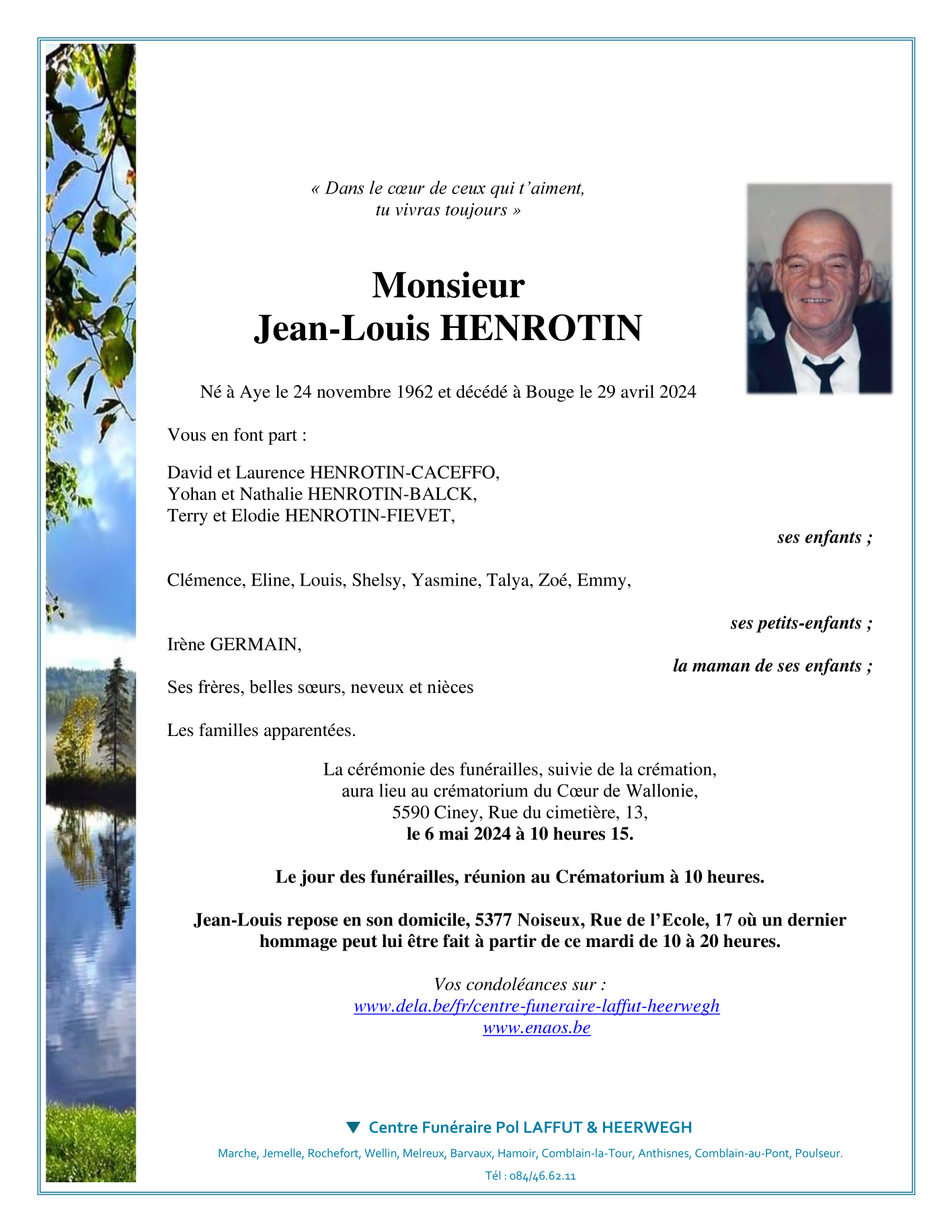 Décédé à Bouge (5004) le lundi 29 avril 2024 à l'âge de 61 ans