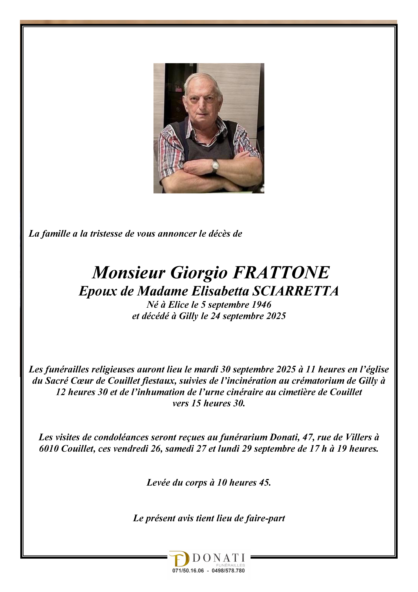 Overleden te Gilly (6060) op woensdag 24 september 2025 op 79-jarige leeftijd
