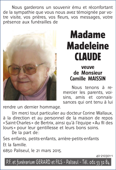 Overleden te Bertrix (6880) op donderdag 26 februari 2015 op 89-jarige leeftijd