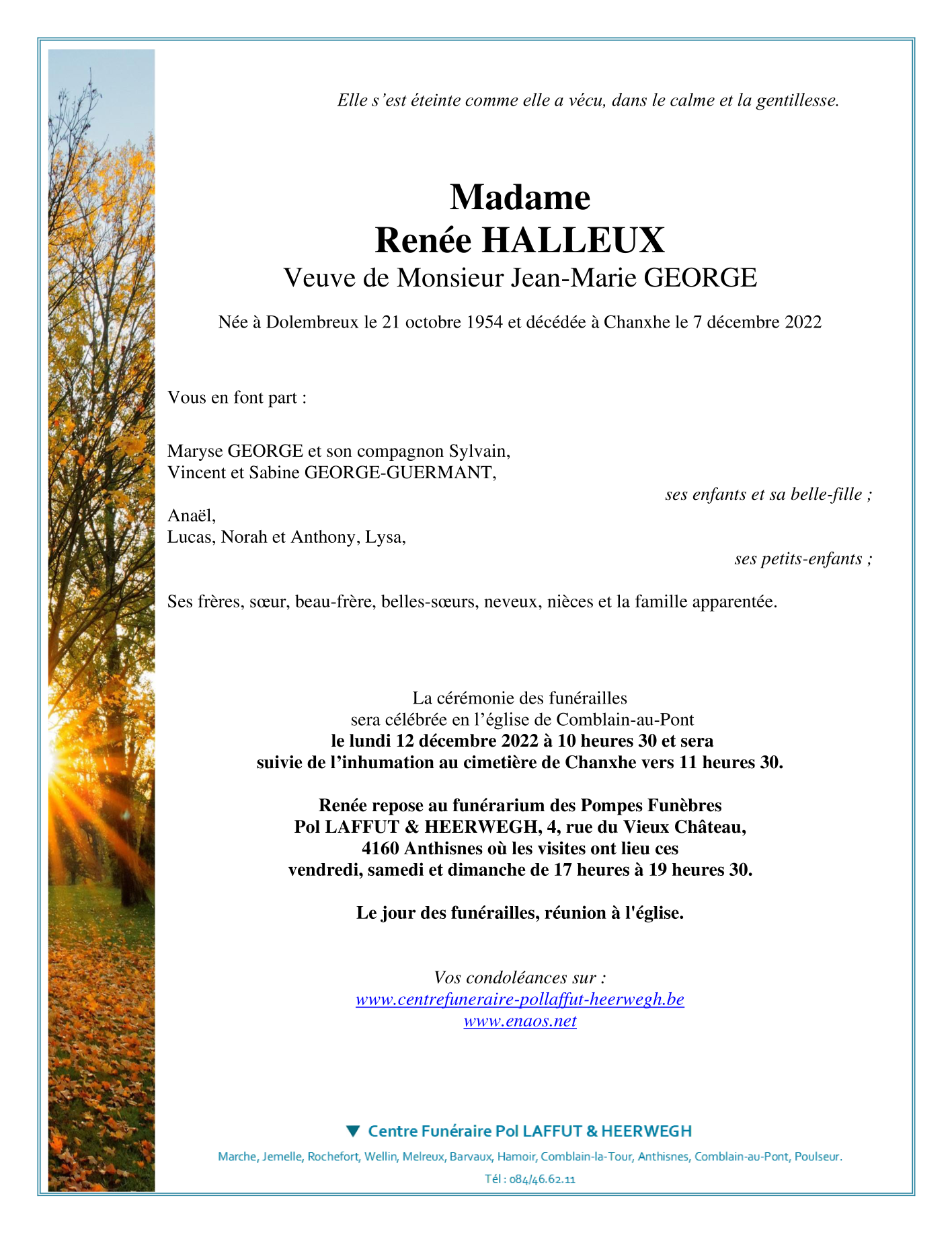 Décédé à Sprimont (4140) le mercredi 7 décembre 2022 à l'âge de 68 ans