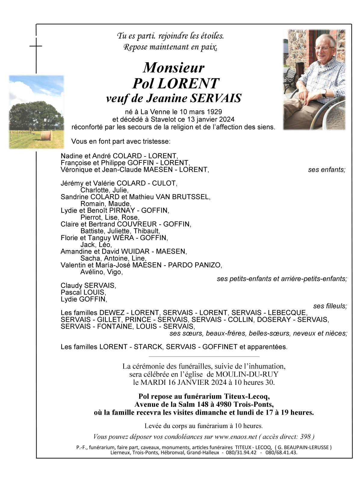 Décédé à Stavelot (4970) le samedi 13 janvier 2024 à l'âge de 94 ans