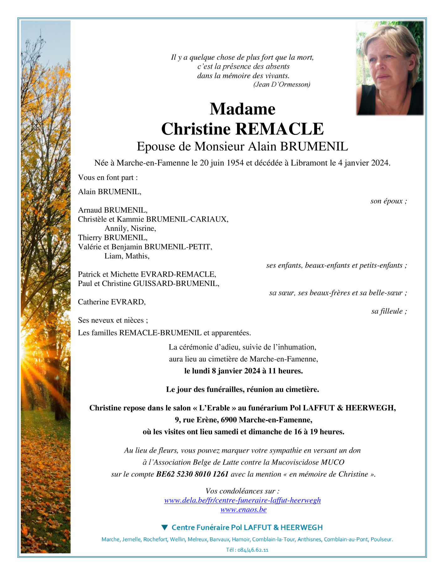 Overleden te Libramont (6800) op donderdag 4 januari 2024 op 69-jarige leeftijd