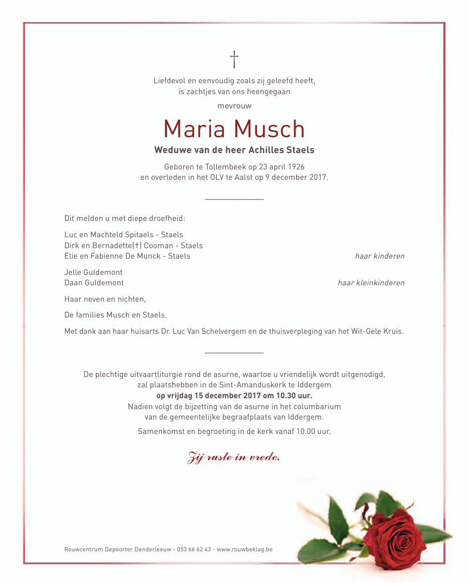 Died in Aalst (9300) on 09 December 2017 at the age of 91 years