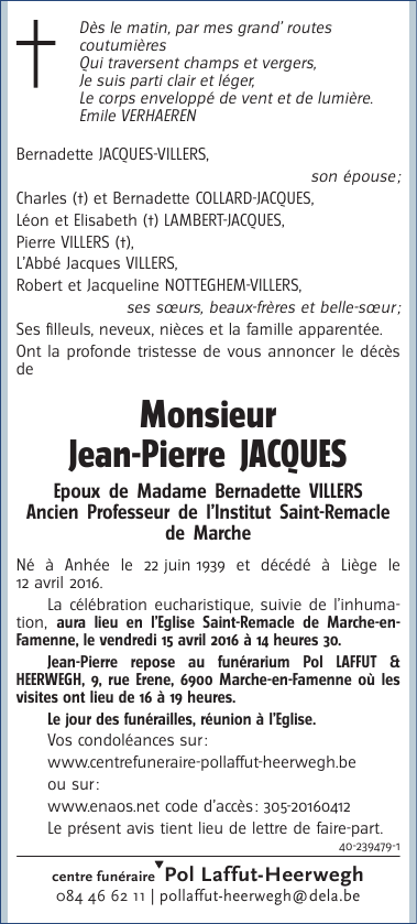 Fallecido en Liège (4000) el martes, 12 de abril de 2016 a la edad de 76 años
