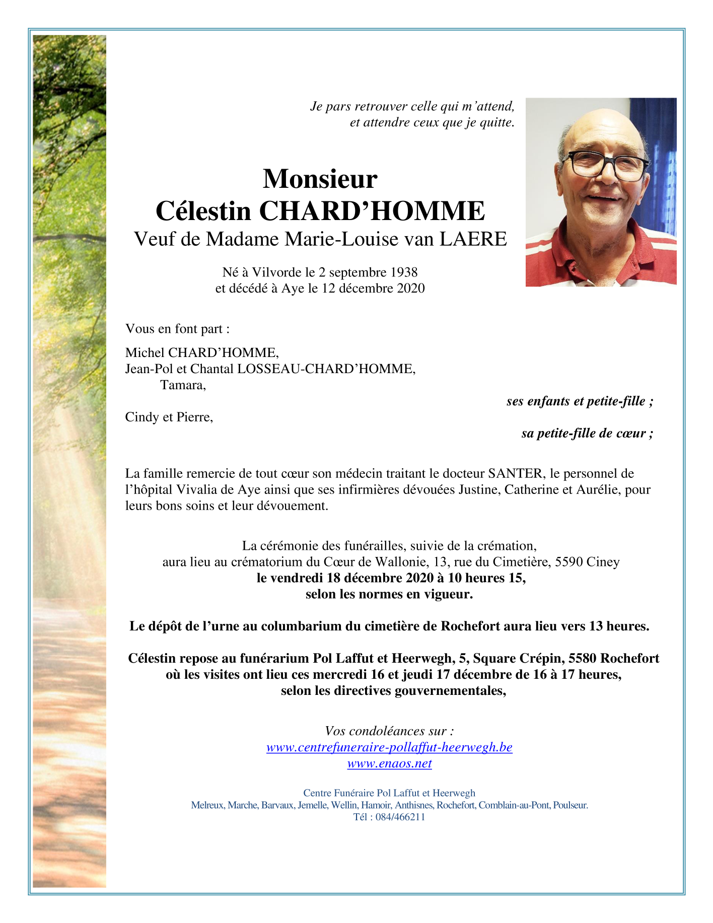 Widower of Madame Marie-Louise van LAERE