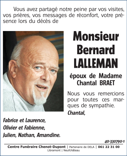 Overleden te Libramont-Chevigny (6800) op zaterdag 4 januari 2020 op 71-jarige leeftijd