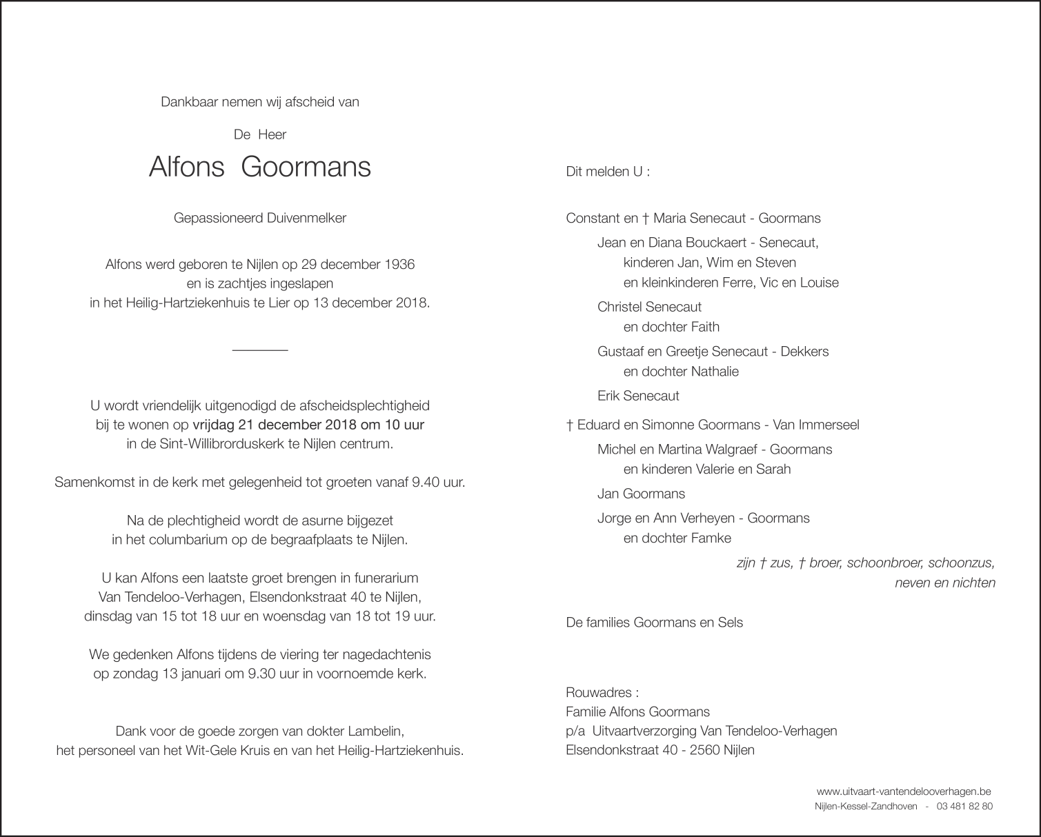 Décédé à Lier (2500) le jeudi 13 décembre 2018 à l'âge de 81 ans