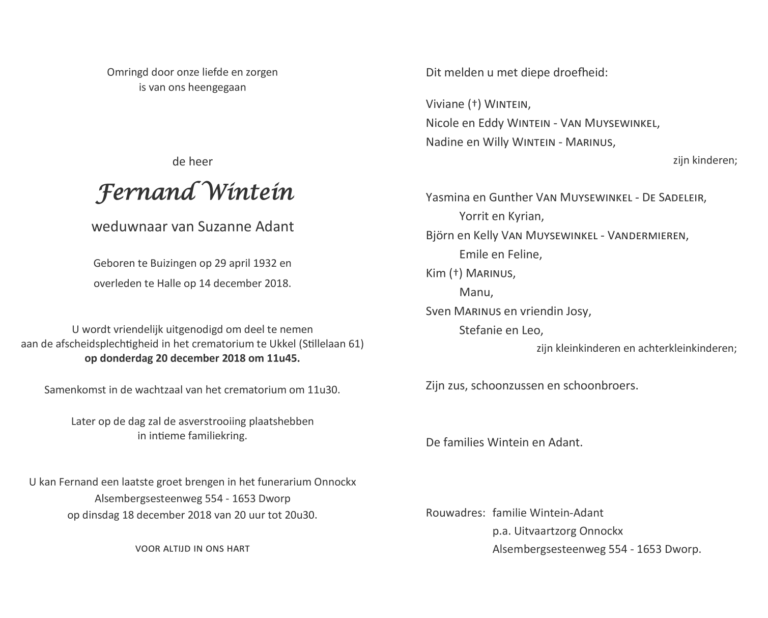 Décédé à Halle (1500) le vendredi 14 décembre 2018 à l'âge de 86 ans