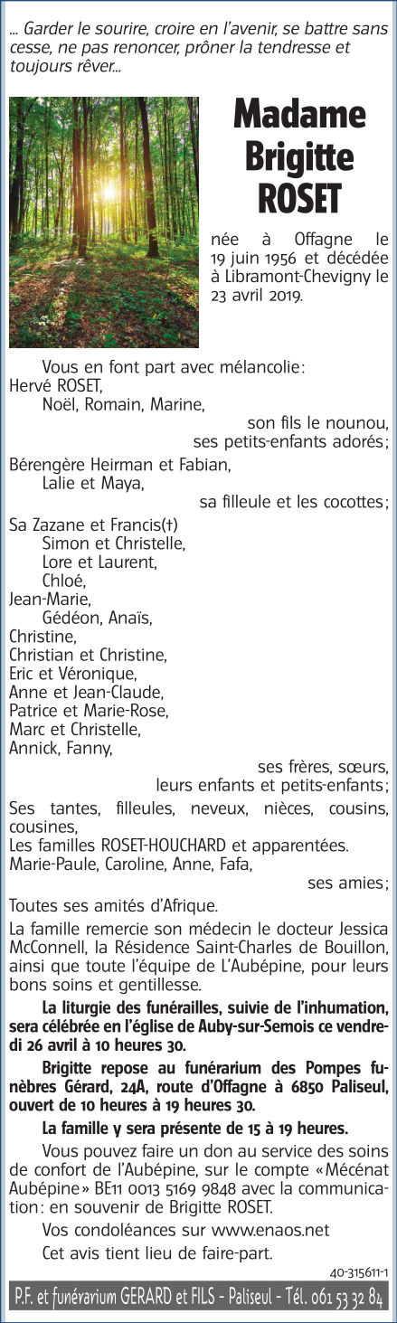 Died in Libramont (6800) on 23 April 2019 at the age of 62 years