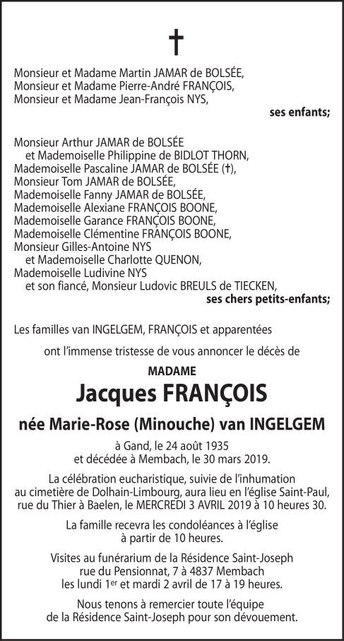 Veuve de Monsieur Jacques FRANÇOIS